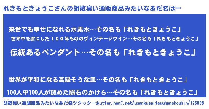 | ヘコむあだ名 | 『れきぷりん』『れきもときょうこ(遠い目)』 |