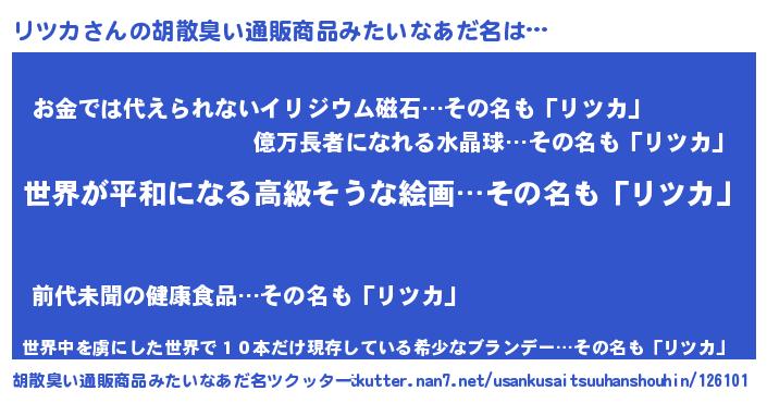 | 意味不明あだ名 | 『リツカフォーエバー』『ペロリンリツカ』 |