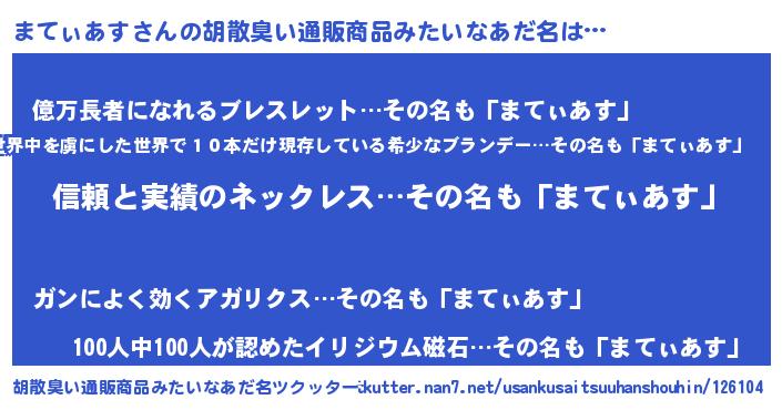 | 意味不明あだ名 | 『とにかく怪しいまてぃあす』 |