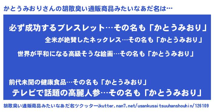 | 意味不明あだ名 | 『かとうみおりフォーエバー』 |