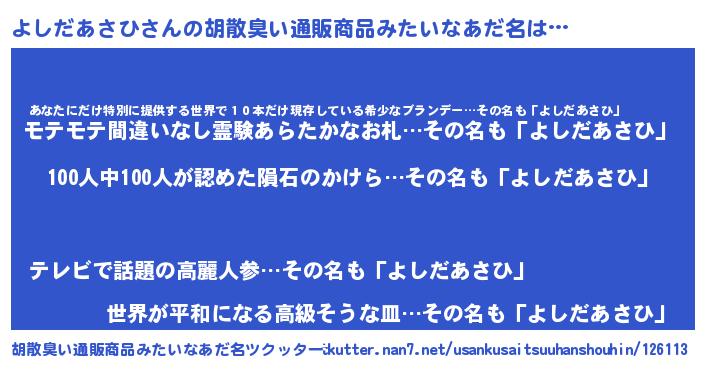 | 肩書あだ名 | 『よしだあさひ学科長』 |
