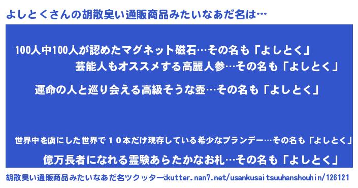 | 意味不明あだ名 | 『よしとくフォーエバー』『自称よしとく』 |
