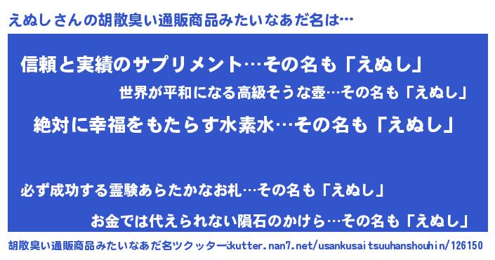 | 意味不明あだ名 | 『永久保存えぬし』『えぬしフォーエバー』 |