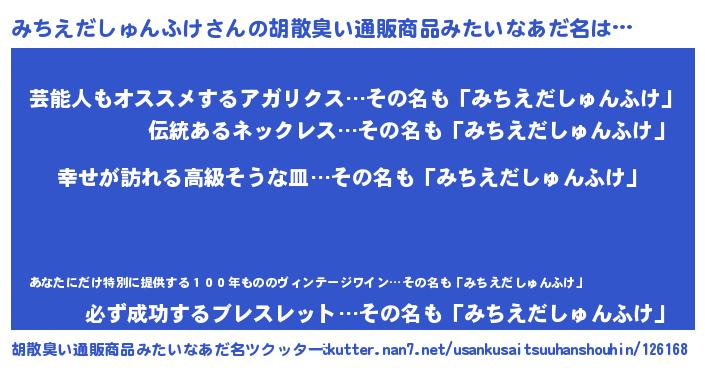 | 意味不明あだ名 | 『みちえだしゅんふけフォーエバー』 |