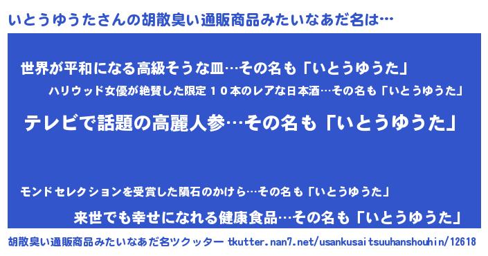 | 肩書あだ名 | 『いとうゆうた閣下』『いとうゆうた中将』 |