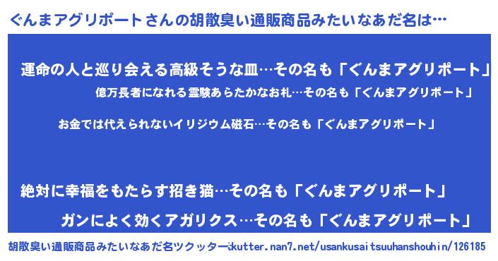 | 意味不明あだ名 | 『眠気覚ましガムぐんまアグリポート味』 |