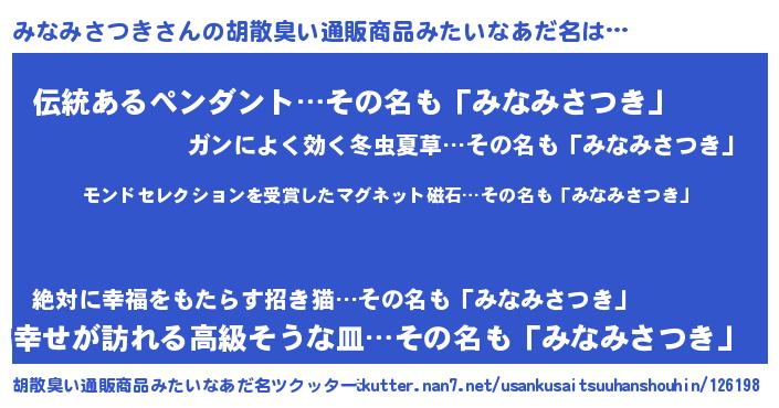 | 男性向けラノベタイトル風あだ名 | 『ノーゲーム・ノーミナミサツキ』 |