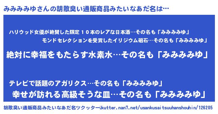 | 男性向けラノベタイトル風あだ名 | 『みみみみゆという概念が存在しない退屈な世界 』 |
