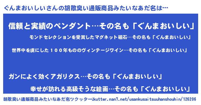 | 意味不明あだ名 | 『もやし科ぐんまおいしい属』 |