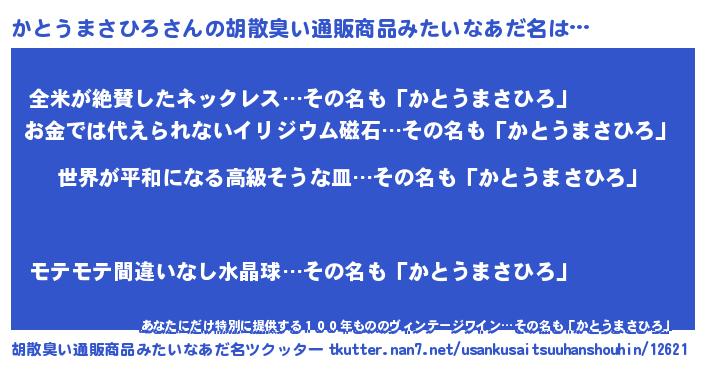 | 意味不明あだ名 | 『かとうまさひろフォーエバー』 |