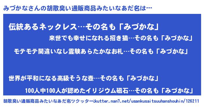 | 男性向けラノベタイトル風あだ名 | 『みづかなの憂鬱』 |