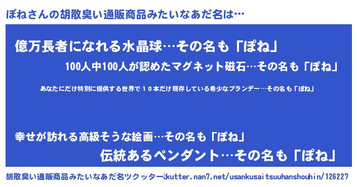 | 意味不明あだ名 | 『住所不定無職ぽね(81歳)』『ペロリンぽね』 |