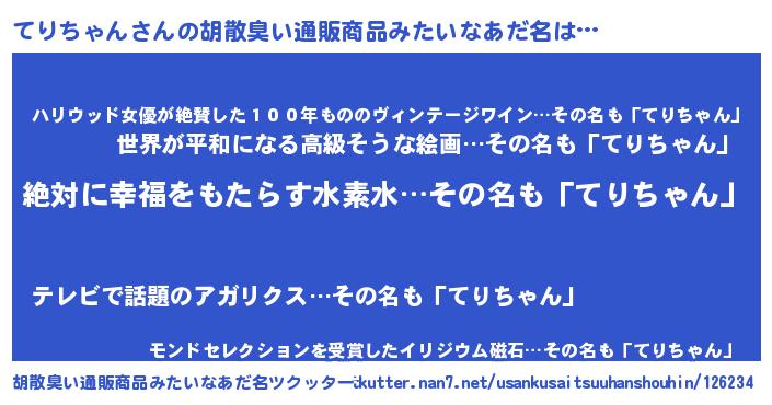| 意味不明あだ名 | 『永久保存てりちゃん』 |