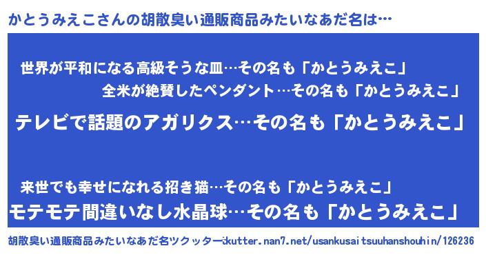 | 意味不明あだ名 | 『自称かとうみえこ』 |