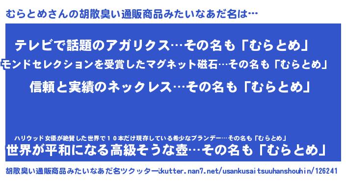 | 肩書あだ名 | 『むらとめディレクター』『むらとめ少将』 |