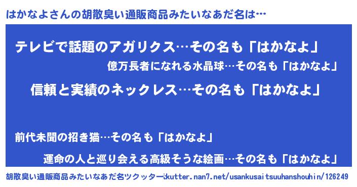 | 意味不明あだ名 | 『とにかく怪しいはかなよ』 |