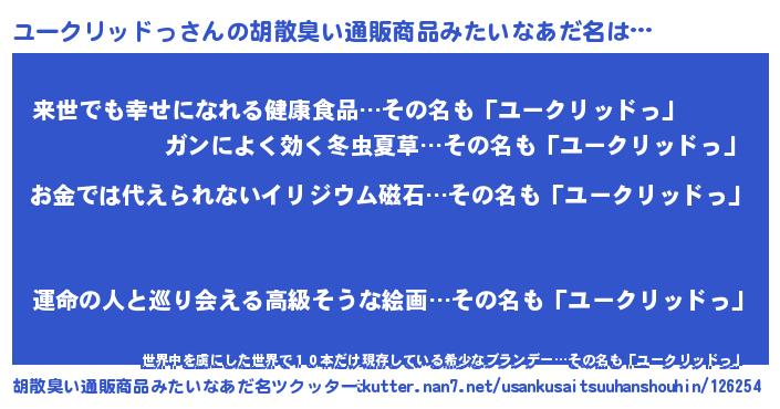 | ヘコむあだ名 | 『ユークリッドっ(笑)』『豆乳』 |