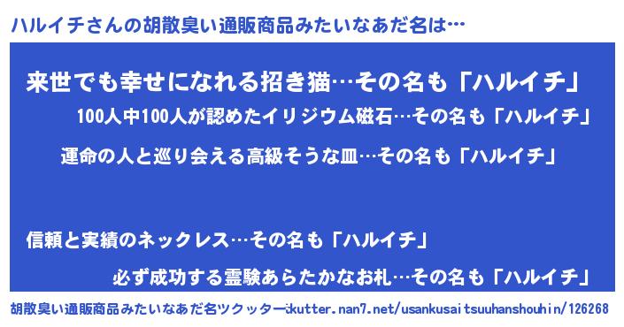 | 意味不明あだ名 | 『ハルイチフォーエバー』 |