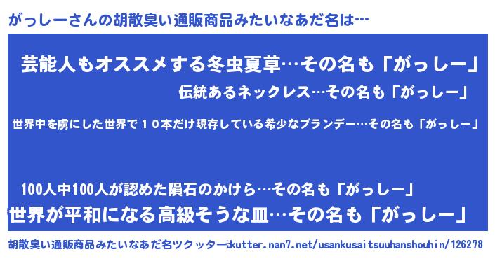 | ヒーロー風カッコイイあだ名 | 『仮面ガッダー』『超時空戦士ガッシー』 |