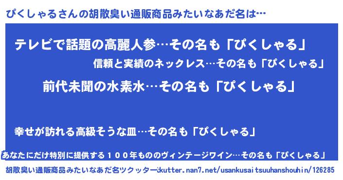 | ヘコむあだ名 | 『ぴくしゃる(苦笑)』『ぴくお』 |