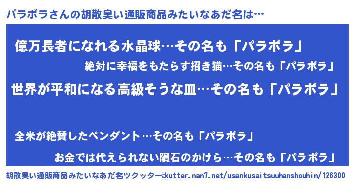 | ヒーロー風カッコイイあだ名 | 『ウルトラパラボラマン』『ネオパラボラ』 |
