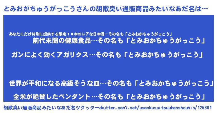 | ヘコむあだ名 | 『とみ太郎』『とみおかちゅうがっこう(笑)』 |