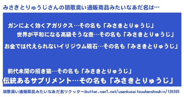 | 男性向けラノベタイトル風あだ名 | 『ノーゲーム・ノーミサキトリュウジ』 |