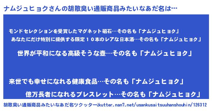 | 男性向けラノベタイトル風あだ名 | 『転生したらナムジュヒョクだった件』 |