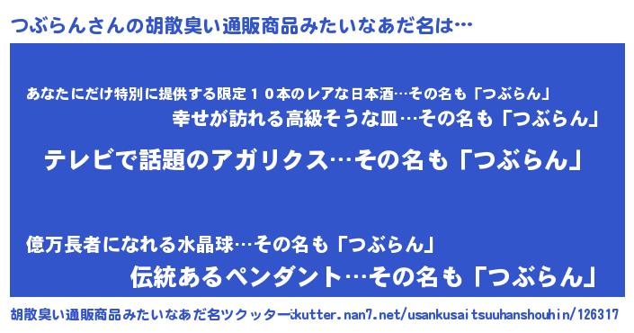 | 意味不明あだ名 | 『自称つぶらん』『たけのこ科つぶらん属』 |