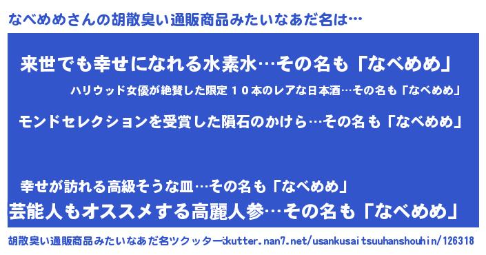 | 意味不明あだ名 | 『ニラ科なべめめ属』『永久保存なべめめ』 |