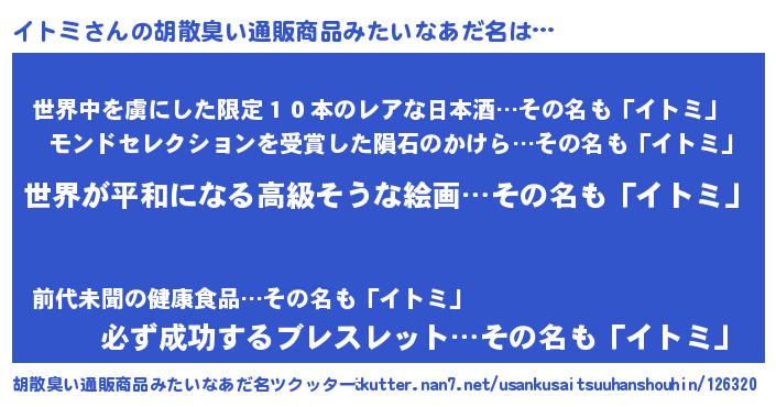 | 意味不明あだ名 | 『イトミフォーエバー』『ペロリンイトミ』 |