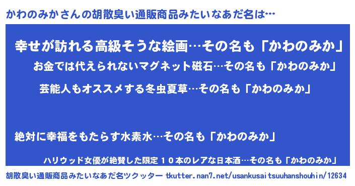 | 意味不明あだ名 | 『自称かわのみか』『永久保存かわのみか』 |