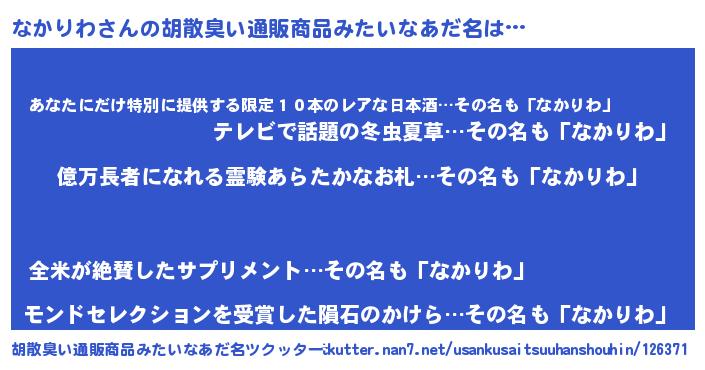 | 意味不明あだ名 | 『ペロリンなかりわ』『自称なかりわ』 |