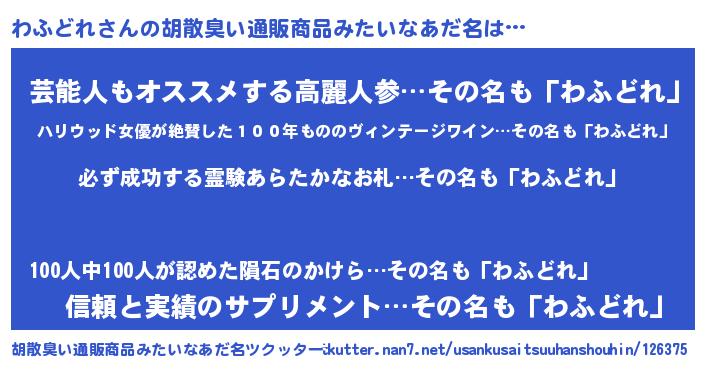 | 意味不明あだ名 | 『ペロリンわふどれ』『自称わふどれ』 |