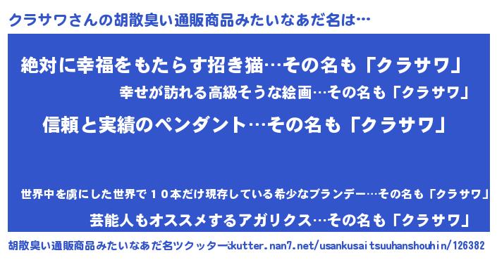 | ヘコむあだ名 | 『クラっちょ』『クラサワ(笑)』 |