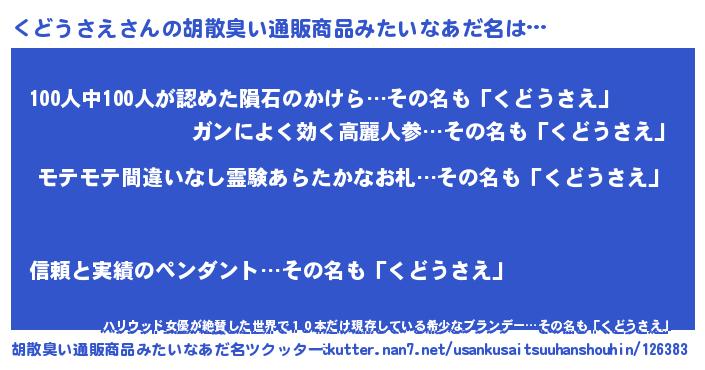 | ヘコむあだ名 | 『くどもー』『くどぷりん』『牛乳』 |