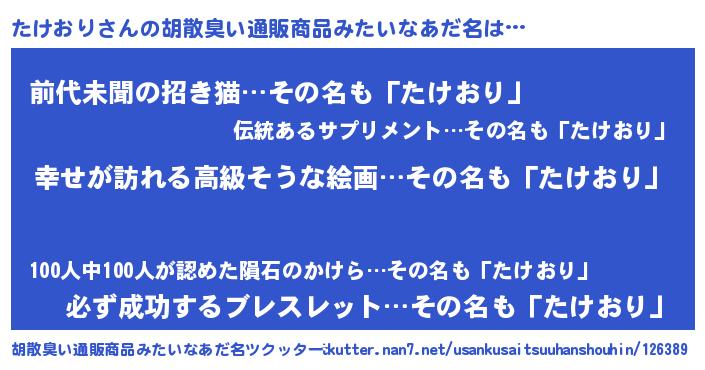 | 意味不明あだ名 | 『たけおりフォーエバー』 |