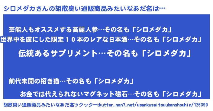 | 意味不明あだ名 | 『とにかく怪しいシロメダカ』 |