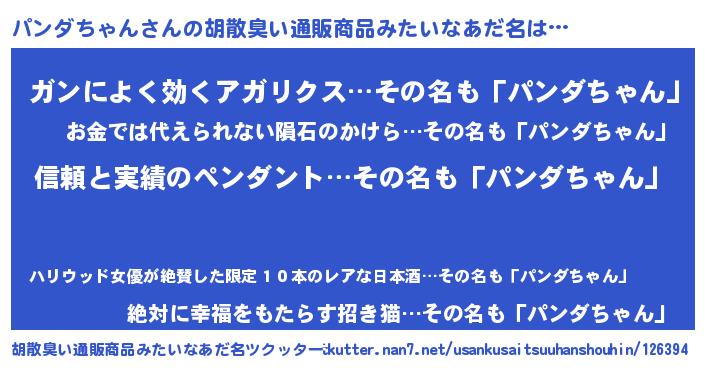 | ヘコむあだ名 | 『パンっちょ』『パンダちゃん(笑)』 |