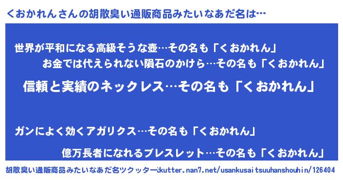 | 意味不明あだ名 | 『とにかく怪しいくおかれん』 |