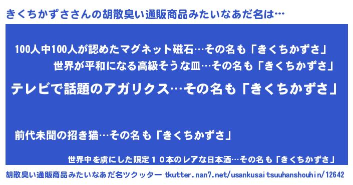 | 意味不明あだ名 | 『自称きくちかずさ』 |