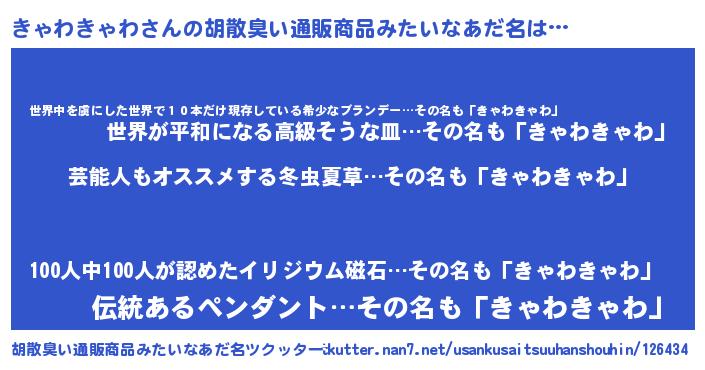 | 男性向けラノベタイトル風あだ名 | 『Re:きゃわきゃわから始める異世界生活』 |