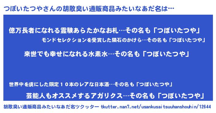 | ヘコむあだ名 | 『つぼいたつや(遠い目)』『つぼもー』 |