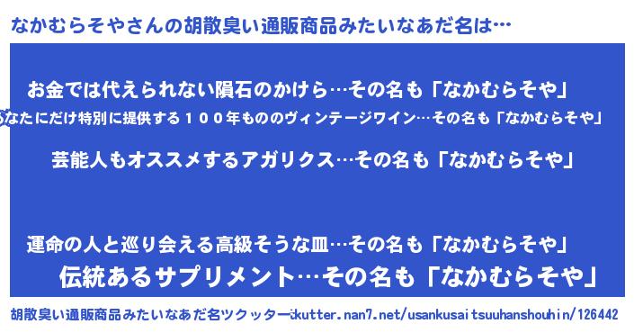 | 恥ずかしいあだ名 | 『ナカムラソヤデラックス』『なかっちょ』 |