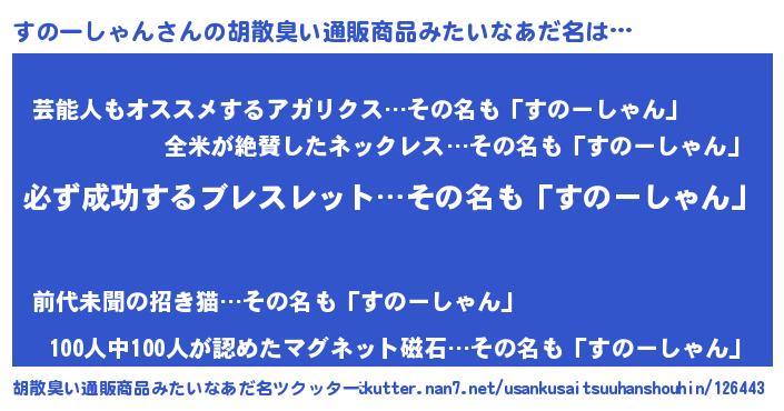 | 男性向けラノベタイトル風あだ名 | 『すのーしゃんの憂鬱』 |
