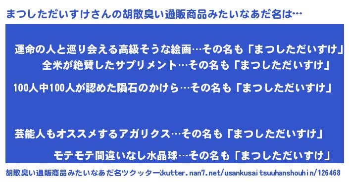 | 意味不明あだ名 | 『眠気覚ましガムまつしただいすけ味』 |
