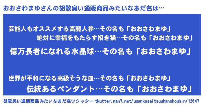 | 意味不明あだ名 | 『ペロリンおおさわまゆ』 |
