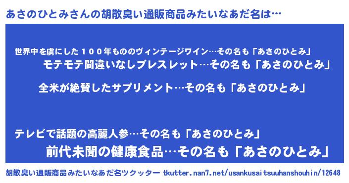 | ヘコむあだ名 | 『あさお』『あさのひとみ(笑)』 |
