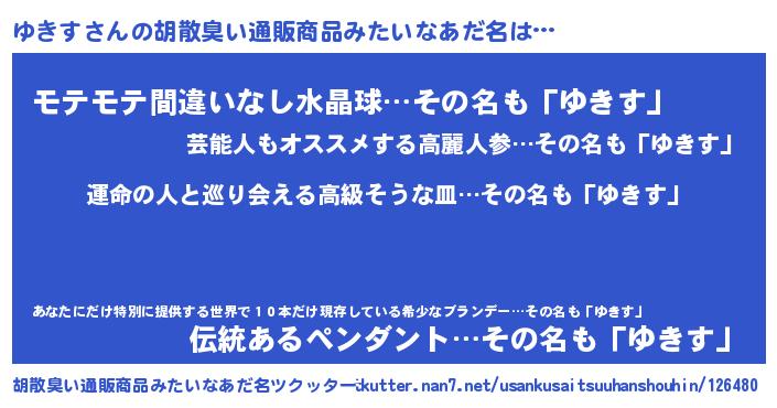 | 意味不明あだ名 | 『ゆきすフォーエバー』『ペロリンゆきす』 |