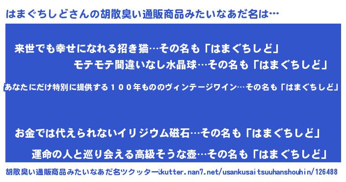 | 意味不明あだ名 | 『住所不定無職はまぐちしど(4歳)』 |